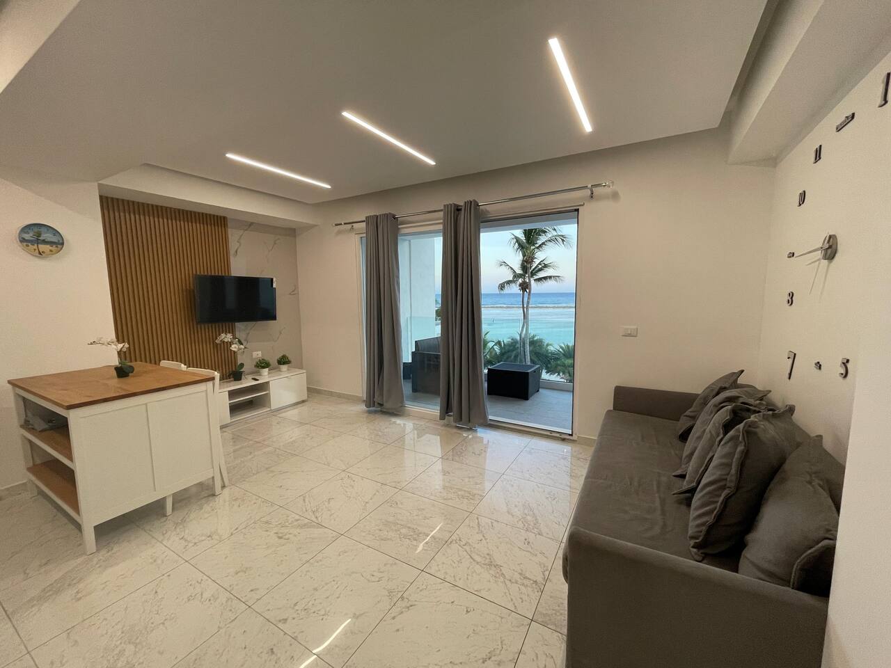When I enter the apartment I was just speechless because of the view of the ocean was stunning especially at night the apartment was Immaculate extremely clean current and very modern everything is high-tech from the door to the smart television. I give this place a 5 star review and I will definitely be returning.
