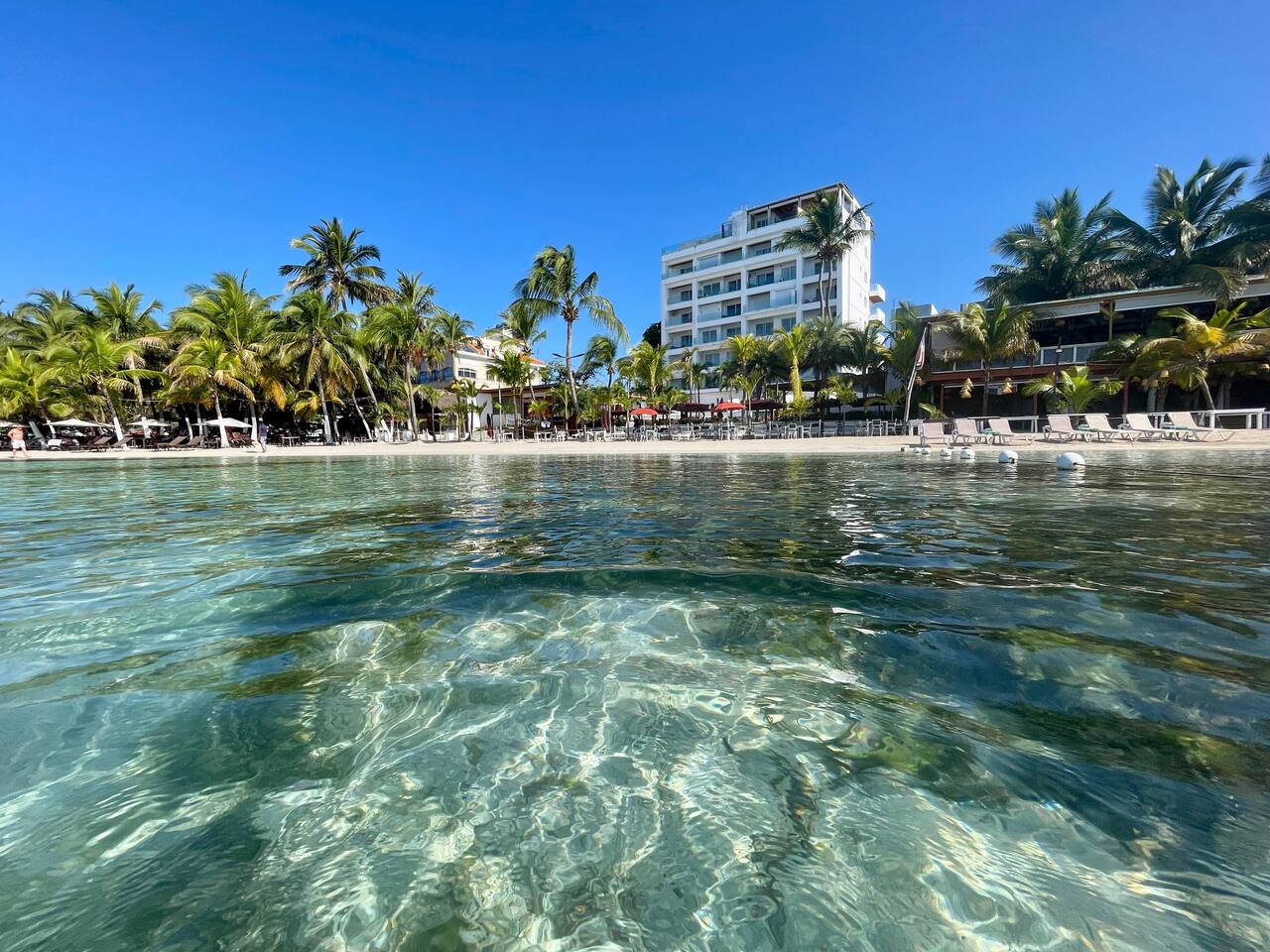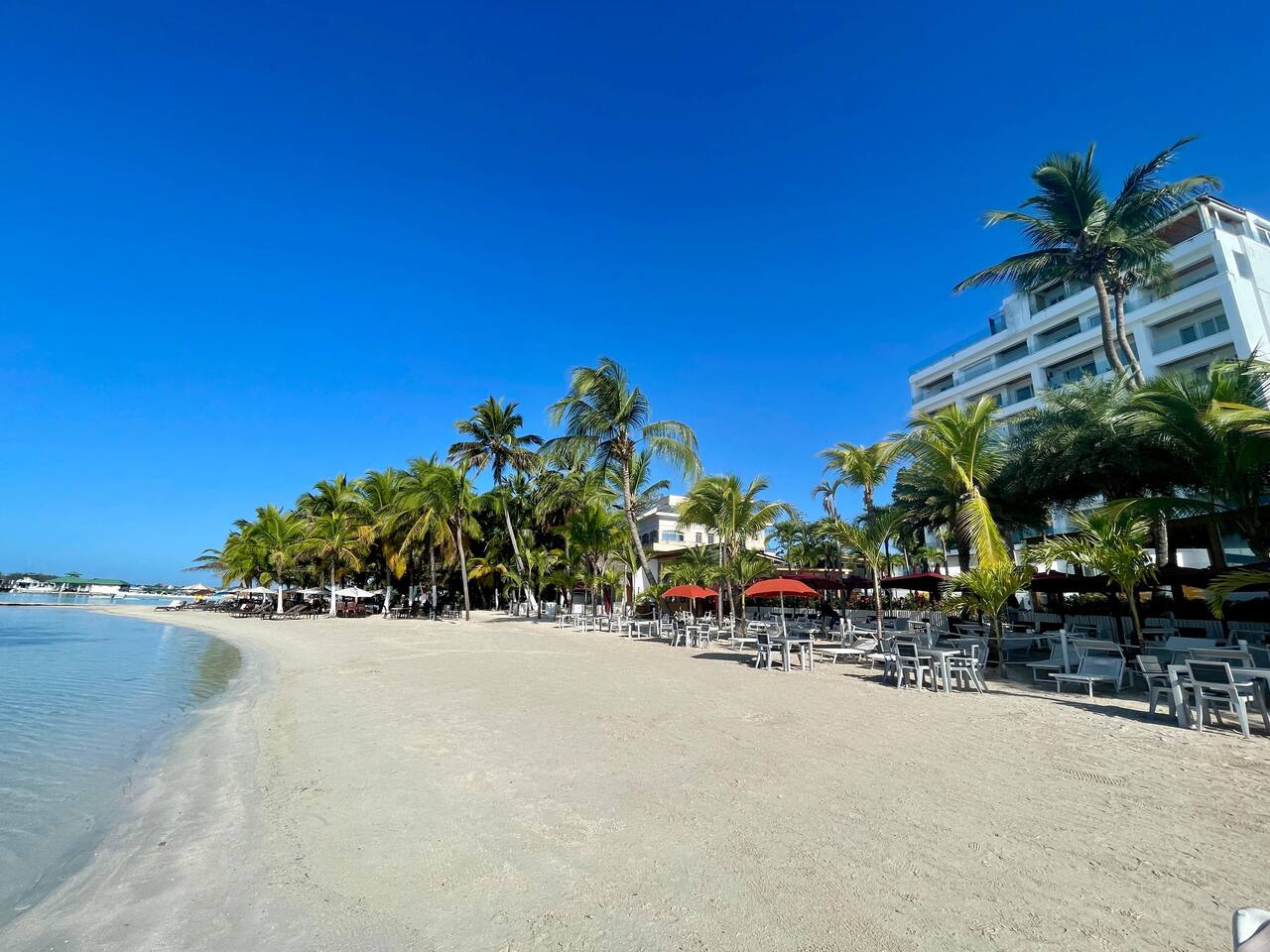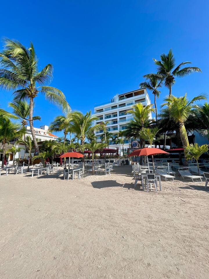 On the beach, free access to beach chairs, umbrellas, breakfast lunch dinner and footsteps to other restaurants. AC very cold. I’ve stayed at the Boca Beach club many times before and Will again.!!!
