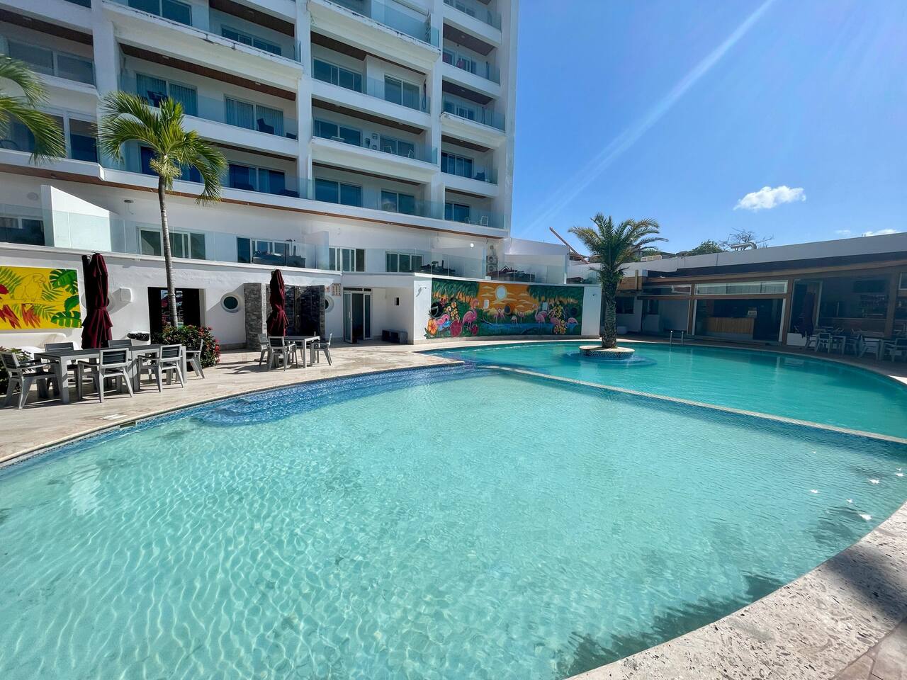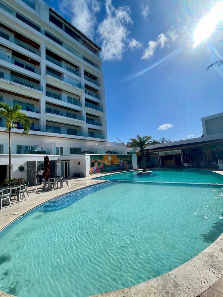 Laguna Azul in Boca Chica is the perfect spot for families or romantic getaways. Enjoy direct access to a private beach and pool. The apartment offers a full bedroom, bathroom, fully equipped open kitchen, sofa bed, smart TV (2), private Wi-Fi, and stunning ocean view. Relax and step right into the Caribbean from your home away from home!